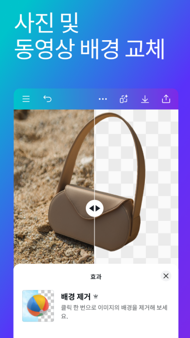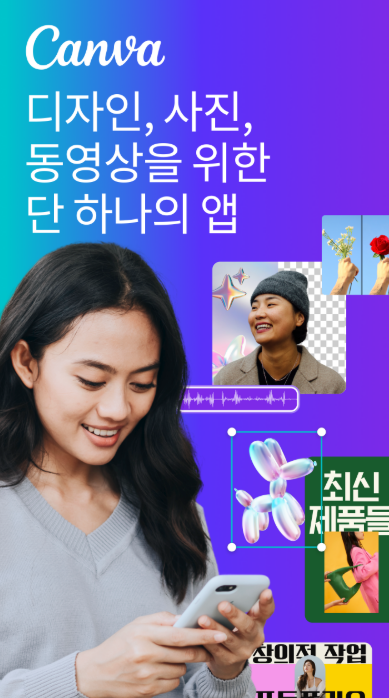 모바일 환경에 최적화된 인터페이스를 통해 사진 편집, 배경 제거, 애니메이션 효과, 영상 편집 등 다양한 디자인 기능을 사용할 수 있으며